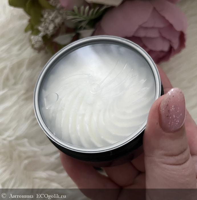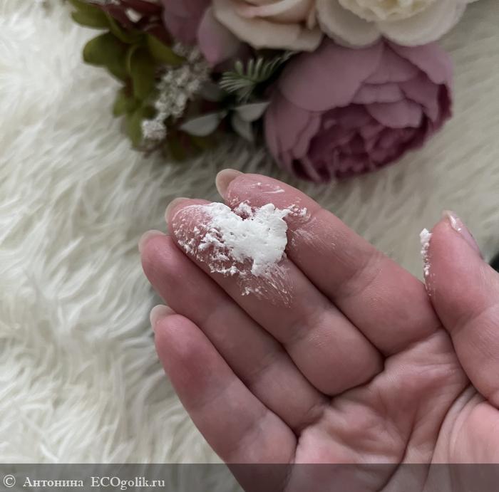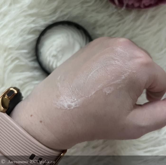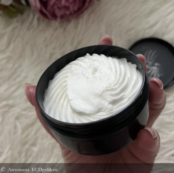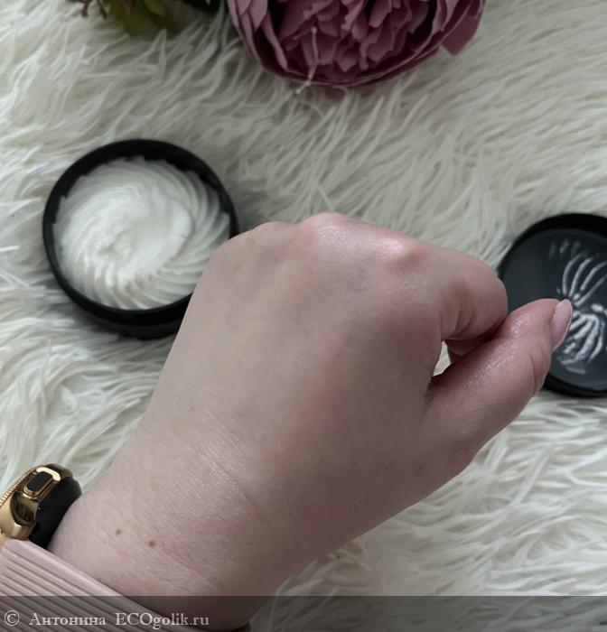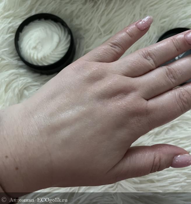 На ее дне указана информация о продукте, включая состав и срок годности. Продукт, как мы видим, максимально натуральный. В составе очень полезные для кожи компоненты.
