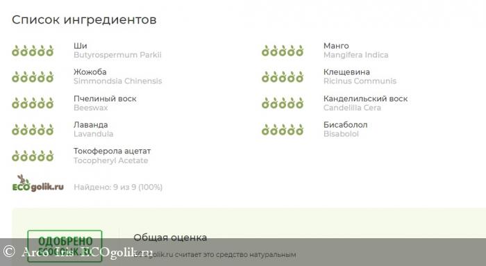 Экоголик считает это средство натуральным. Несмотря на заявленную в составе лаванду, ее аромат практически не ощущается и сам бальзам для меня скорее оказался ментоловым, но ничего страшного в этом я не вижу, тут для меня важнее был эффект.