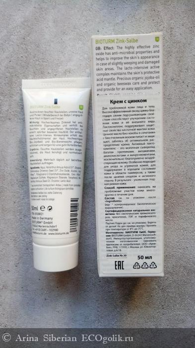 Первый тюбик: BIOTURM Крем с цинком Nr.30, 50 мл
