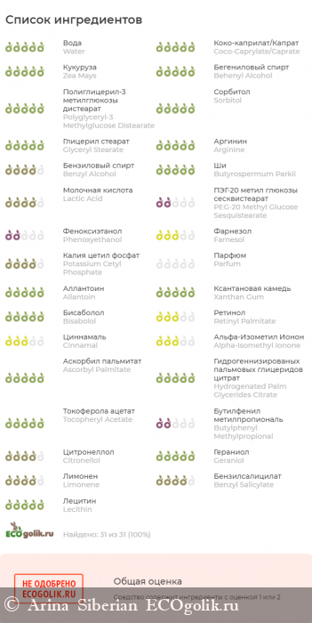 Итог: ни за что бы не купила такой крем за эти деньги. Да и в принципе за любые - ингредиенты отличные, но формула выглядит абсолютно неработающей. + оставляет на коже душащую жирную пленку