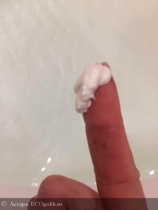 Легкая, словно у плотно взбитого сливочного крема, ммм! Цвет тоже молочно-сливочный. На кожу ложится ровно, постепенно тает и впитывается.