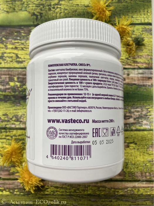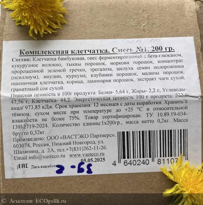 Данные о свойствах клетчатки Вастэко и богатстве её компонентов: