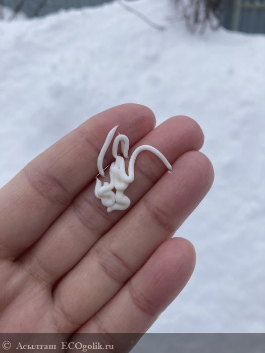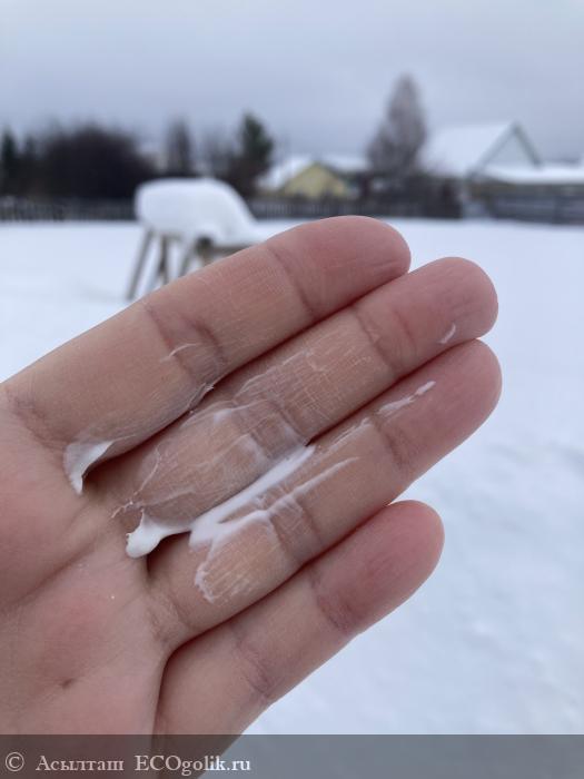 Крем белого оттенка с легкой желтизной. Плотный и густой.