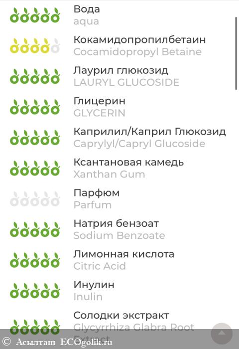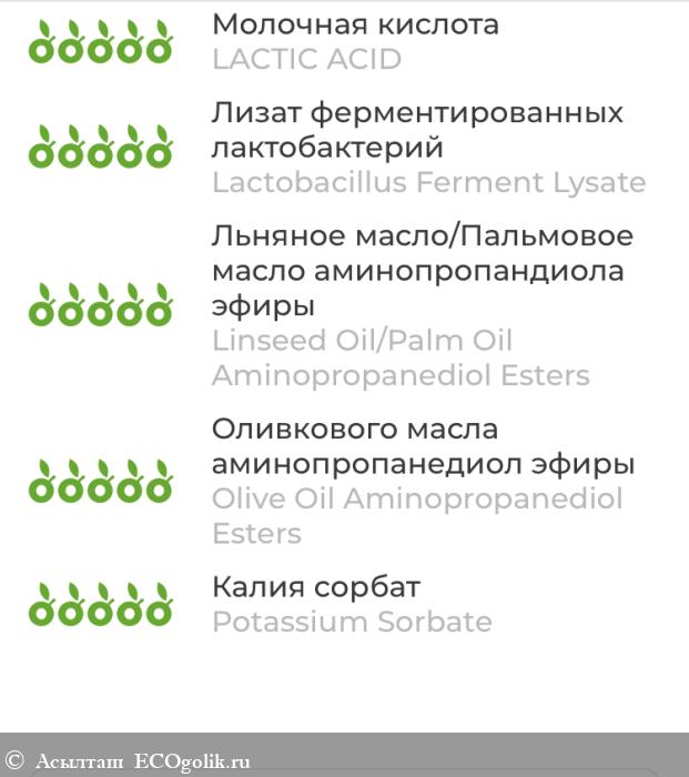 Состав радует, все с зелёными листиками, есть экстракт солодки(обладает противовоспалительным действием), молочная кислота(восстанавливает микрофлору), льняное и оливковое масла(питают и увлажняют).