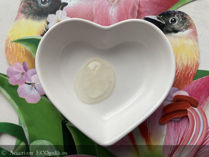 Гель бесцветный, мутноватый, напоминает растаявший лед.