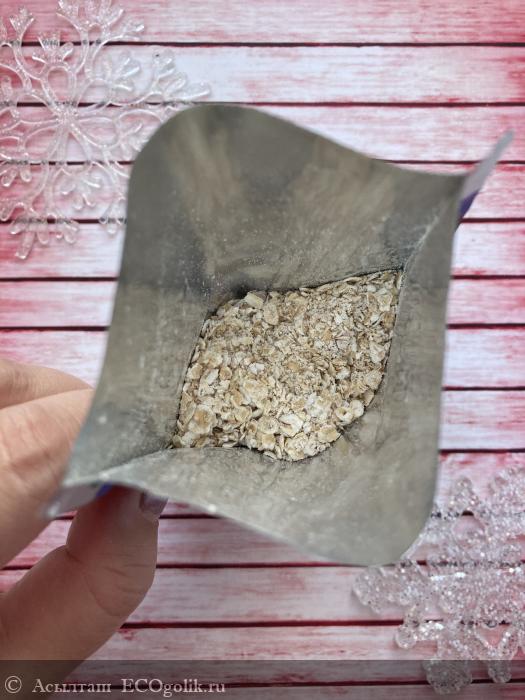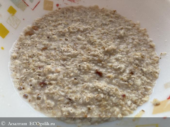 Налила 100 мл горячей воды и накрыла крышкой. Через 3 минуты каша была готова.