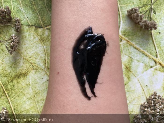 Маска - мега-черная, как лакированная, сильно блестит. По текстуре - густая.