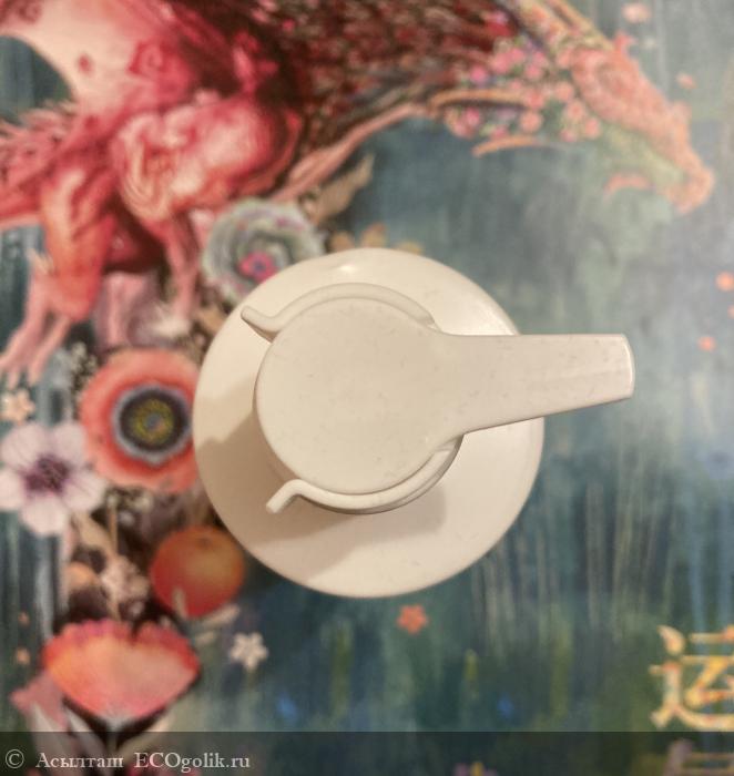 На верхушке дозатор, был ограничитель в виде кольца - защита от проливания.