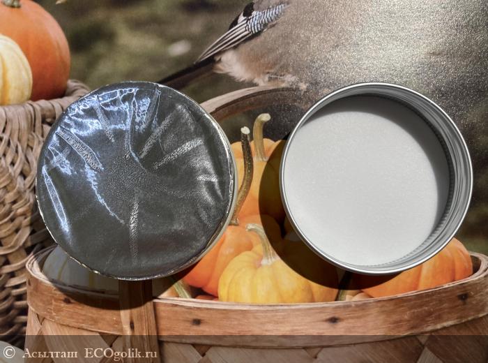 Открыла коробочку, внутри баночка в виде кругляшка, закрыта алюминиевой крышкой со стикером.