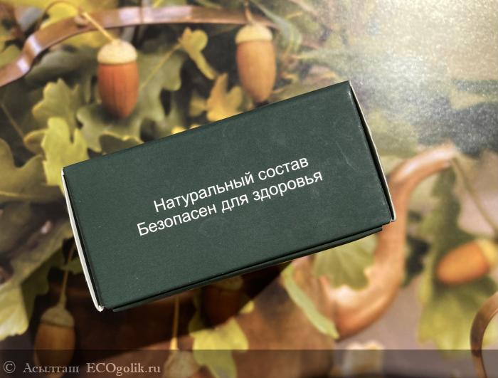Продукт находится в стильной темно-зелёной коробочке, спереди - название крупными буквами.