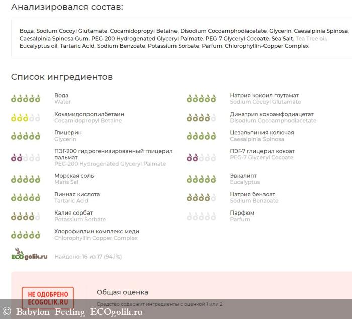Состав достаточно обширный, заявленные чайное дерево и эвкалипт в нём представлены в виде масел.