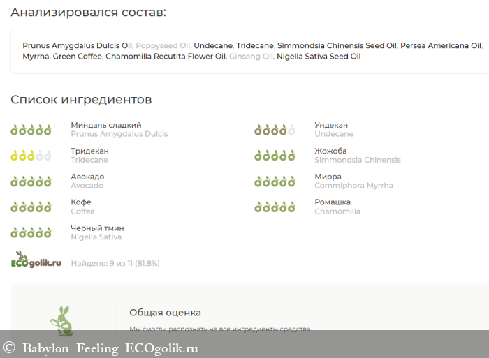 Не все компоненты масла смогли быть поняты при разборе состава, масла мака и женьшеня Экоголик не нашёл. Но, думаю, к этим компонентам в любом случае вопросов не будет.