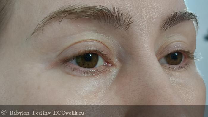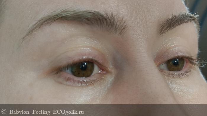 Производитель рекомендует наносить макияж не менее чем через 20 минут после применения масла. На своём опыте скажу, что этого мало. Я наносила макияж через полчаса и карандаш с тушью отпечатались на веках, хотя обычно у меня такой проблемы нет. Т.е., если утром Вы после ухода наносите макияж, то масло Вам не подойдёт.