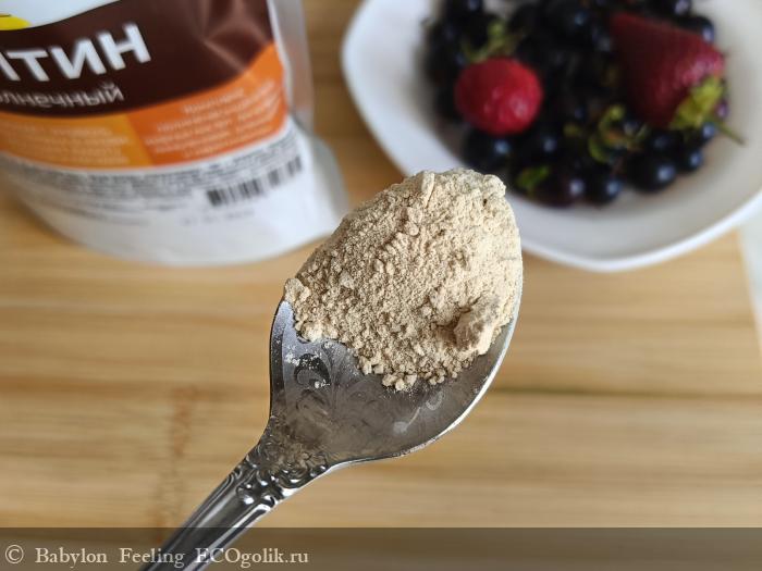 Порошок мелкого помола, без примесей. В жидкостях растворяется хорошо, без комочков.