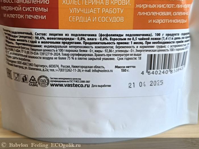 Babylon Feeling: Лецитин подсолнечный от ВАСТЭКО - лёгкость применения и польза для организма