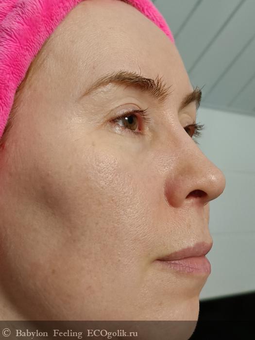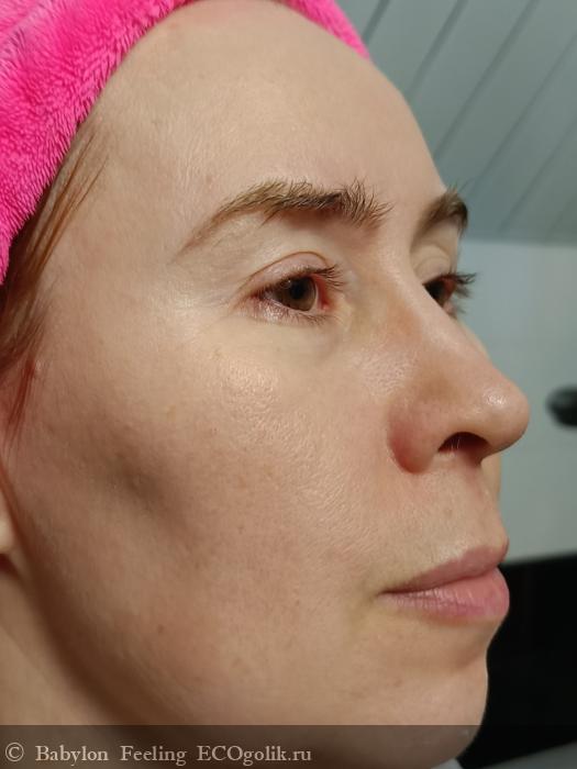 Кожа после маски заметно посветлела, поры очистились и сузились, даже пигментное пятно стало менее заметно. Кожа выглядит подтянутой. При этом совершенно нет ощущения стянутости и сухости, но дальнейший увлажняющий уход обязательно нужен.