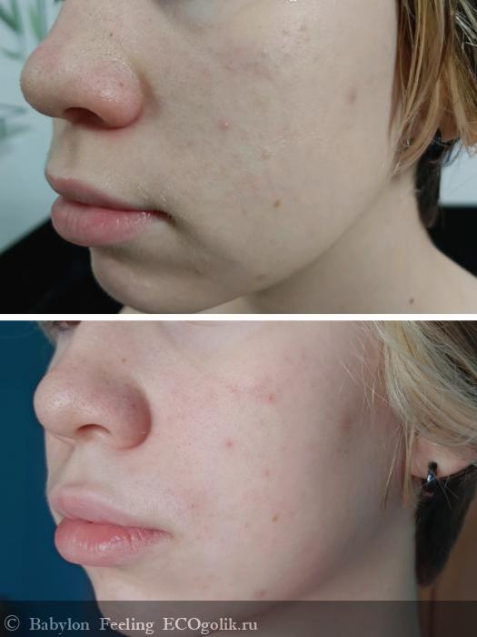Кожа заметно посветлела, количество чёрных точек уменьшилось. При регулярном применении этот эффект закрепляется, чёрные точки появляются всё реже, покраснения и раздражения уменьшаются.