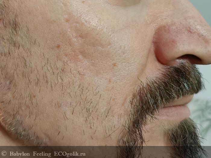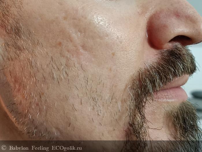 Теперь покажу действие пенки на своём супруге - обладателе проблемной чувствительной кожи. На фото до умывания заметны чёрные точки и покраснения.