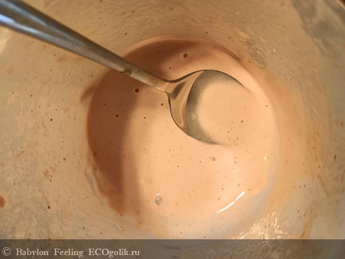 Для приготовления оладушек я залила 50-ю мл воды 5 столовых ложек смеси с горкой и перемешала с помощью миксера. Это очень удобно для тех, кто не дружит с выпечкой, как я.