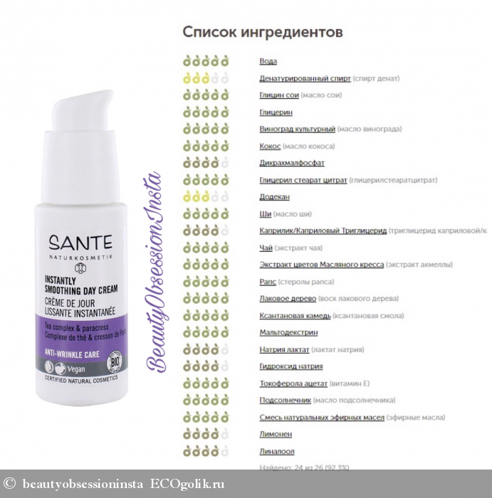 Я разочарована. Не могу сказать, что вижу эффект, чем-то отличающийся от других кремов. Я чувствую крем на коже. Первые 10 мин после нанесения кожа как будто покрыта пленкой. И самое главное, Sante конфликтует с тональником от Dr.Haushcka, какое-то из этих средств скатывается на лице😐.