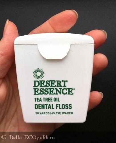 И последний на сегодня мой помощник, это зубная нить с чайным деревом Desert Essence. Мой стоматолог строго-настрого запрещает мне пользоваться зубочисткой, поскольку последняя травмирует десны. А зубную нить мой стоматолог приветствует. Я выбрала эту нить, поскольку она содержит эфирное масло чайного дерева, которое является прекрасным антисептиком. Плюс производитель указывает, что продукт не тестируется на животных, не содержит красителей и синтетических ароматизаторов. Производство США. В этой маленькой коробочке 45 метров зубной нити! На вкус - настоящее чайное дерево. Рекомендую!