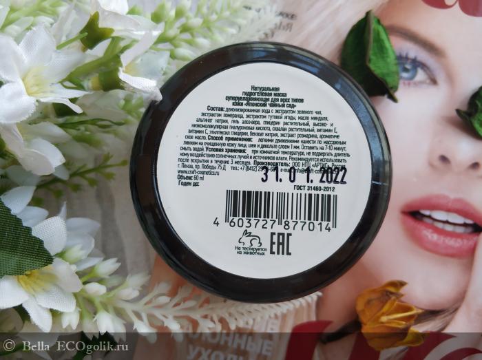 Смывается проточной водой. Иногда я пользуюсь спонжем коньяку, иногда нет. После умывания на коже нет дискомфорта. Благодаря альгинату натрия в составе маска оказывает небольшой подтягивающий эффект. Гель алоэ вера и экстракт чая работают на интенсивное увлажнение кожи, оказывают антиоксидантное действие.