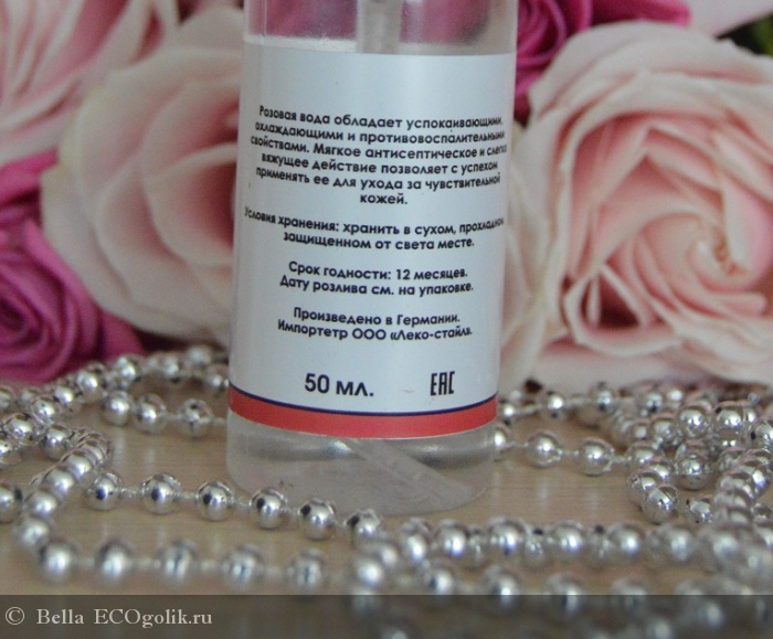 Есть описание продуктов. Это хорошо. Розовую воду я брала как многофункциоанльное средство для использования вместо тоника для лица, для разбавления глиняных масок и орошения масок на лице, а также для изготовления кубиков льда с розовой водой.