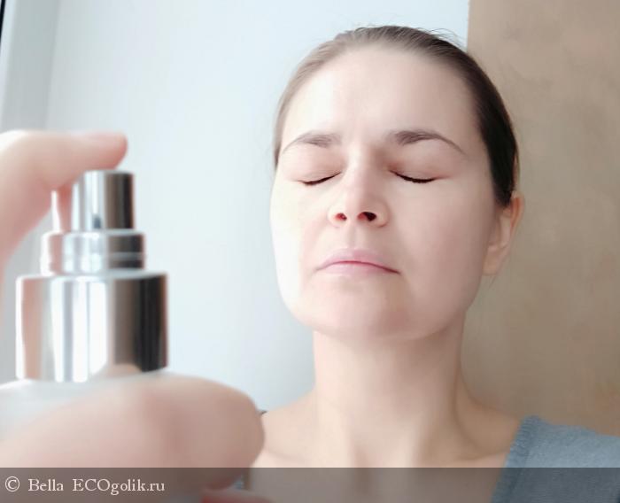 Во время орошения лица я ощущаю едва-едва заметный легкий травяной аромат, который тут же испаряется. Тоником мне пользоваться в кайф! Он восстанавливает pH кожи, увлажняет лицо и подготавливает кожу к дальнейшему уходу. И если в течение дня эффект не так заметен, поскольку я наношу дневной крем, то вечером – очевиден! После тоника я не использую больше никаких средств, и кожа чувствует себя великолепно! Нет никакой сухости и ощущения стянутости. И это при том, что влажность в квартире составляет 18% (у меня гидрометр)! Я думаю, что такому эффекту тоник обязан экстракту женьшеня, зеленого чая, розмарина, а также гидролатам герани, василька и гамамелиса и увлажняющим компонентам.