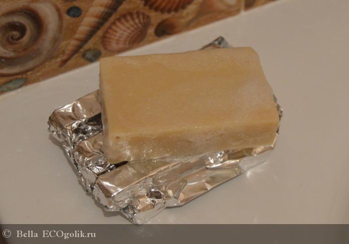 После использования храните шампунь в хорошо проветриваемой мыльнице. Чтобы мокрый шампунь не прилипал к деревянной мыльнице, я обернула последнюю фольгой. На хранение это не влияет, а вот пользоваться стало еще удобнее. Шампунь на фольге не размокает.