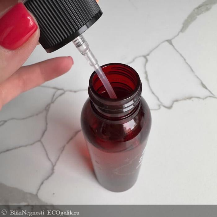 Упаковка: чарующий очень меня почему-то флакон из красного прозрачного пластика с распылителем и защитным колпачком, приехал ко мне в картонной коробочке и слюде, внутри вкладыш был с рекомендациями производителя по использованию и другой полезной информацией