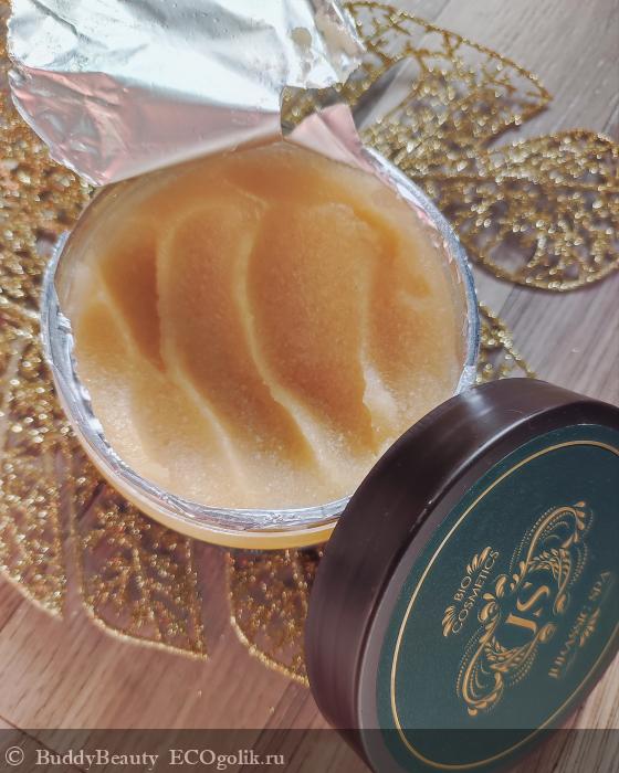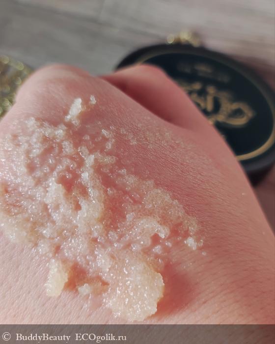 По текстуре скраб довольно плотный, похож на сахарный мед, только подтаявший. Частички сахара мелкие и не травмируют кожу головы, как по мне размер частичек идеальный. Частички также хорошо вымываются из волос и не застревают в волосах.