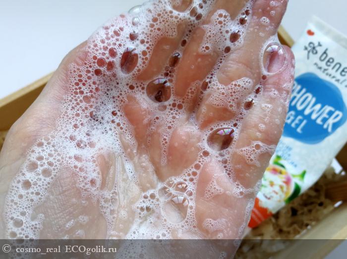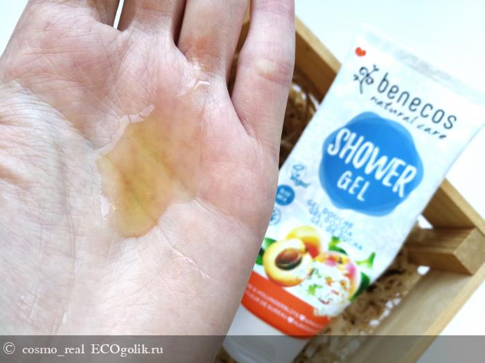После геля кожа чувствует себя комфортно. Она гладкая и приятная на ощупь, кожа совсем не требует дополнительного ухода, но как же не нанести потрясающее молочко Benecos из этой линейке, все же хочется продлить это абрикосовое удовольствие как можно дольше