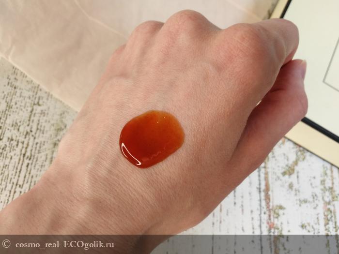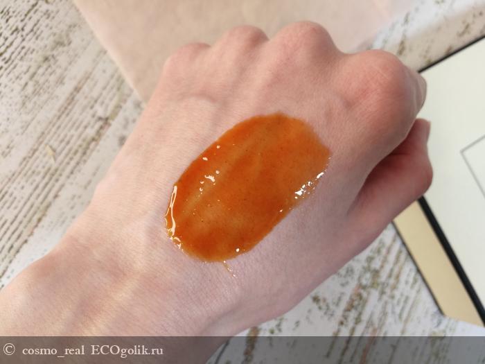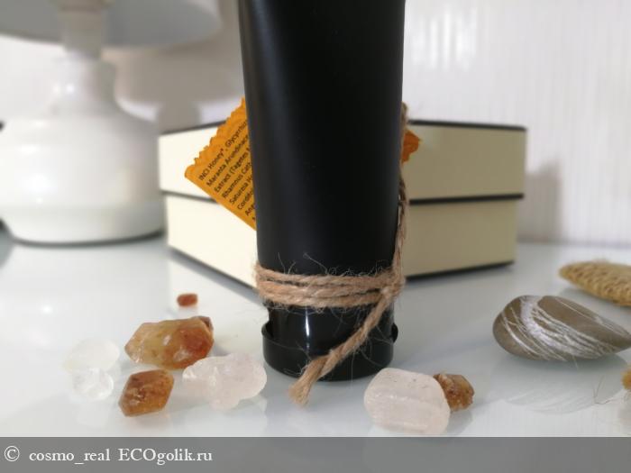 Текстура текучая при комнатной температуре (все-таки в составе на первом месте органический мед) с мелкими частичками, благодаря которым бальзам имеет легкий эффект пилинга. При понижении температуры текстура становится густой. На самом деле, это не текстура, а настоящий кайф