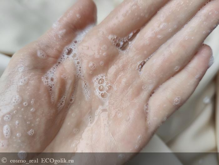 При контакте с водой гель превращается в нежнейшую шелковистую пену, которая мягко очищает и дарит ощущение свежести и чистоты.