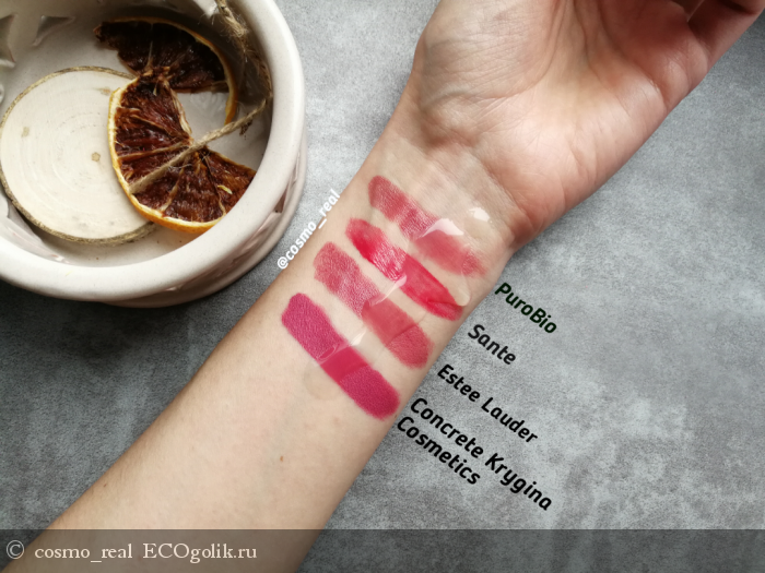 - Натуральные средства для губ PuroBio и Sante растворились очень быстро, практически сразу