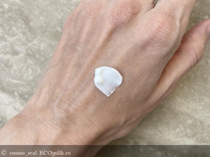 Текстура на первый взгляд кажется плотной (все-таки крем богат маслами), но на деле она нереально воздушная без маслянистого или жирного финиша.