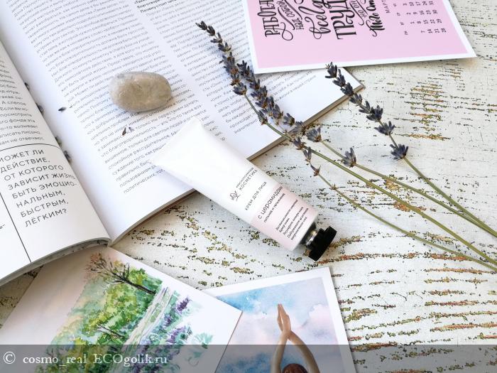 Он здорово дополняет и (скажем так) закрывает аромат сыворотки из этой же линейки. Ароматы не конфликтуют, они практически идентичны, но отличия все же имеются. Сыворотка мне показалась имеет более яркий аромат, крем - менее. Тоже ощущается любимая и нежная лаванда в сочетании с цитрусами (ближе к лимону). Очень красивый и успокаивающий аромат.
