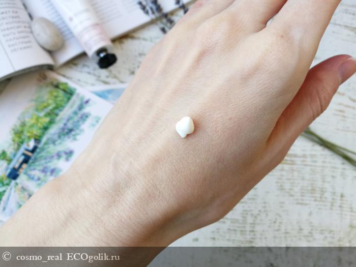Она умеренно густая, т.е. даже если вы очень сильно нажали на тюбик, крем не потечет. Консистенция молочная увлажняющая и прекрасно питающая!