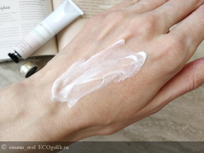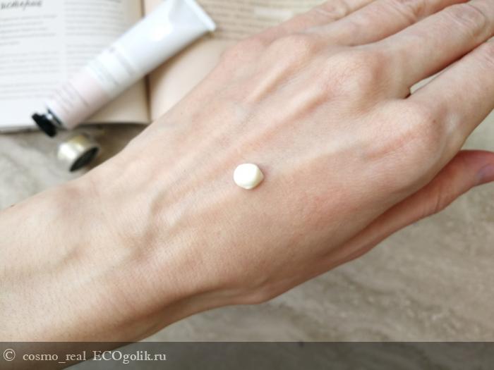 Консистенция умеренно густая, пластичная. Напоминает консистенцию крема с церамидами. Приятно распределяется на коже. Мгновенно впитывается и не оставляет после себя жирный финиш.