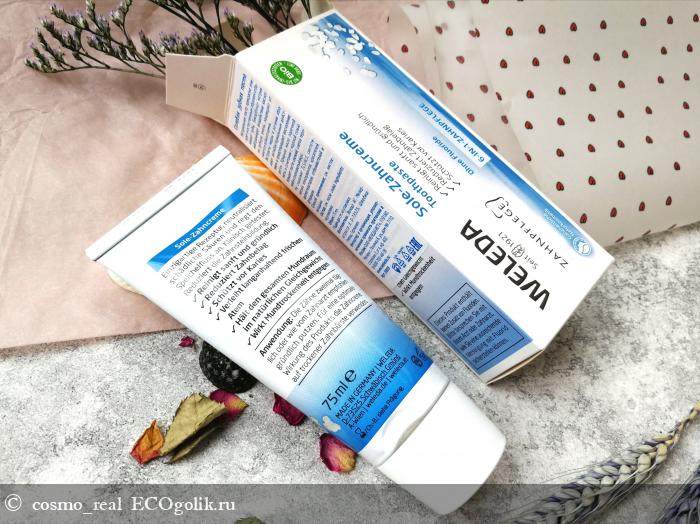 Дела с натуральными пастами у меня складываются 50/50. Некоторые не нравятся от слова совсем, некоторые плохо очищают налет (я прям чувствую, что не хватает этой чистоты и свежести), некоторые оставляли во рту странный неприятный привкус. Попадались, конечно, и хорошие варианты, но не могу сказать, что хотелось прям повторять и повторять это средство. И тут я попробовала Weleda