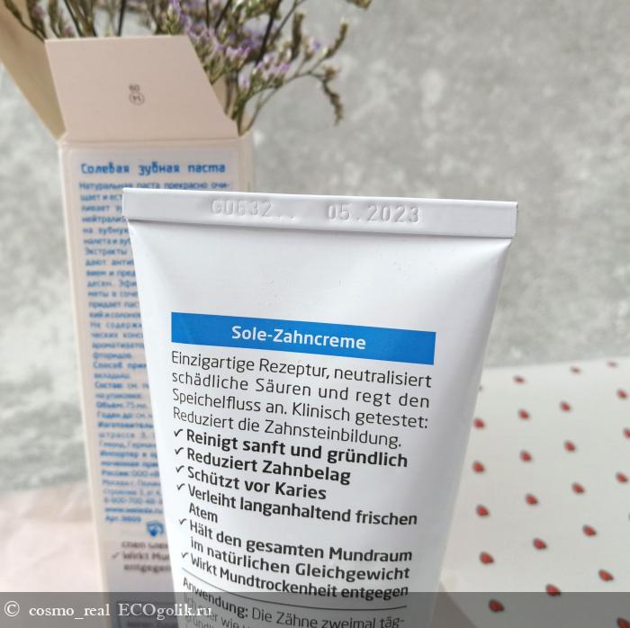 Она обладает свежим, терпким и солоноватым вкусом, так как сочетает эфирное масло перечной мяты и морскую соль. Но при этом не меняется восприятие после чистки зубов. Нет того самого нелюбимого ядреного послевкусия. Я, конечно, люблю мятное послевкусие, но когда оно умеренное. Вот у Weleda именно такое! При этом после чистки остается чувство свежести и чистоты