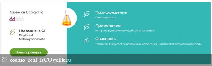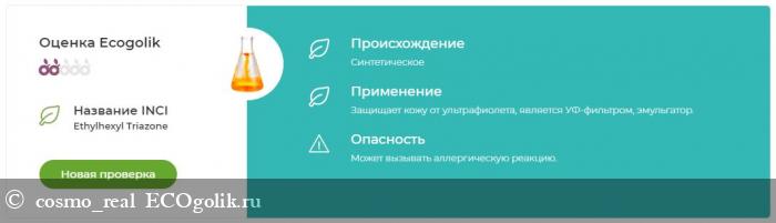 - УФ-фильтры: этилгексилметоксициннамат (EHMC), диэтиламиногидроксибензоилгексилбензоат (DHHB), этилгексилтриазон (EHT), бис-этилгексилоксифенолметоксифенилтриазин (BEМT). Подробнее о компонентах прикрепляю информацию ниже.