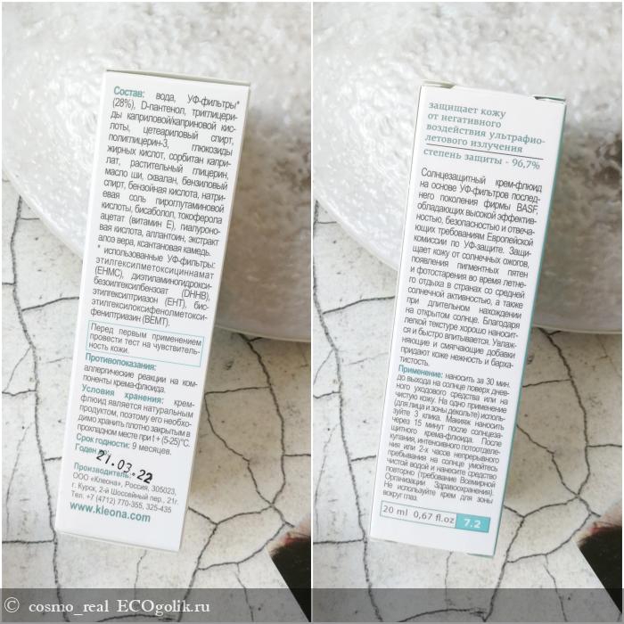 С солнцезащитным кремом-флюидом SPF30 Kleona у меня вышло очень забавно. Я долго не могла выбрать (еще до приглашения на тестирование), что лучше приобрести: крем-флюид или просто крем. Перечитала еще раз отзывы экоголиков, наконец-то определилась, положила в корзину. Отвлеклась. Спустя время приходит предложение на тестирование