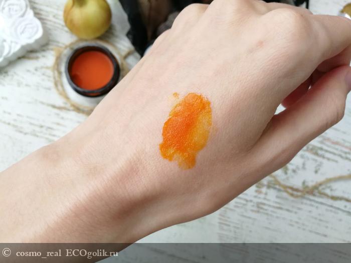Яркая и солнечная текстура, которая напоминает мне вовсе не крем, а бальзам или крем-масло. При соприкосновении с кожей крем начинает таять (но не до водяного состояния, конечно же) и становится еще более податливым.