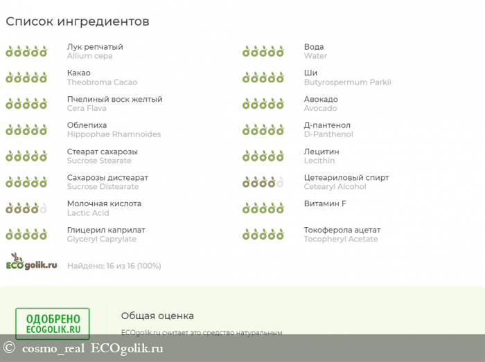 Состав прекрасный, никаких вопросов не вызывает. Все компоненты одобрены.