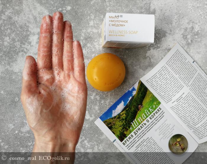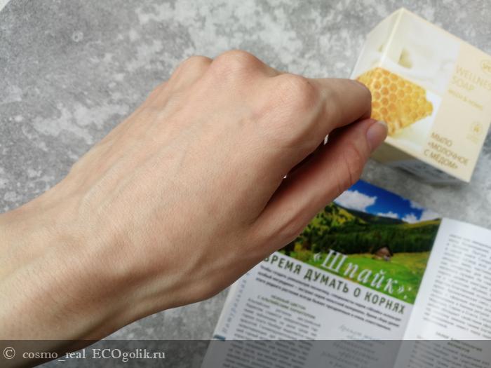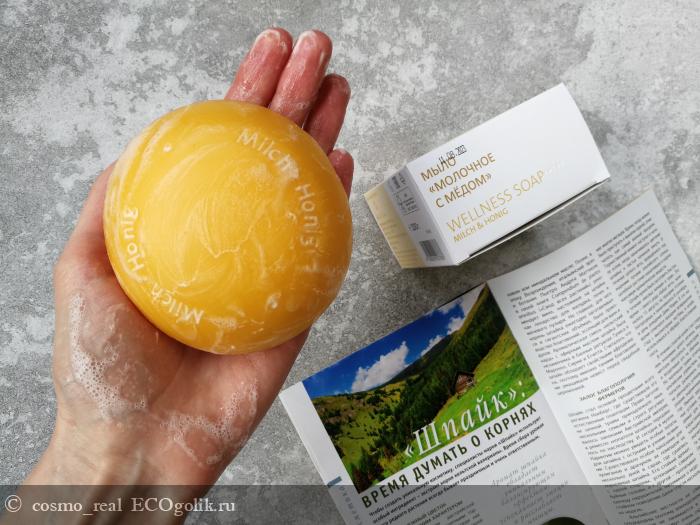 У мыла потрясающий аромат - молочные реки и медовые берега. Он очень нежный и согревающий, действительно медовый с нежными молочными нотками. Уверена, что оно понравится всем. Ведь аромат не кричащий, но он хорошо ощущается