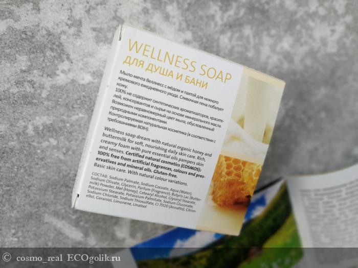 Роскошное мыло "Молочное с медом", как и вся линейка Wellness Spa, - идеальна для домашних спа-процедур. Мыло изготовлено на основе на основе высококачественных растительных масел - кокосового, пальмового и оливкового, без животных жиров. Содержит эфирные масла, растительные экстракты и другие натуральные ингредиенты контролируемого биологического происхождения. Также содержит порошок молочной сыворотки и мёд. Не содержит синтетических ароматизаторов, красителей, консервантов, минеральных масел. Возможны естественные вариации цвета, обусловленные использованием растительных красителей.