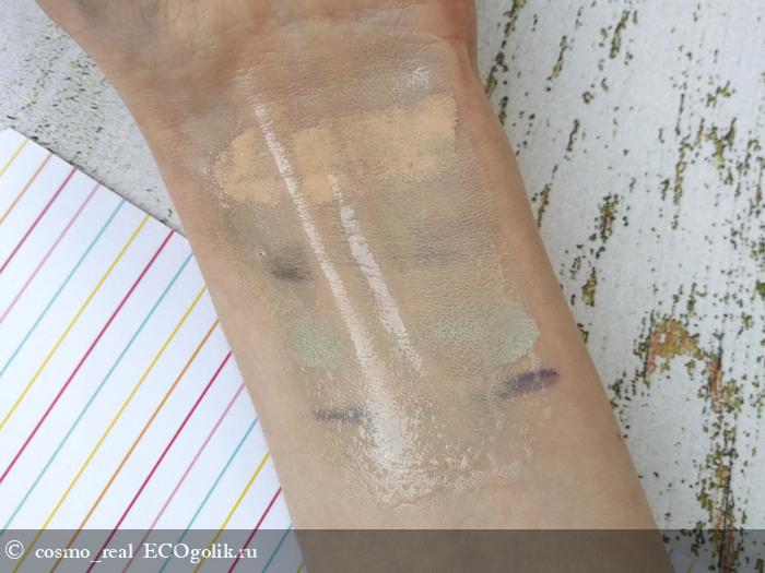 От слов перейдем к действиям и проведем эксперимент. Ниже я нанесла следующие средства: