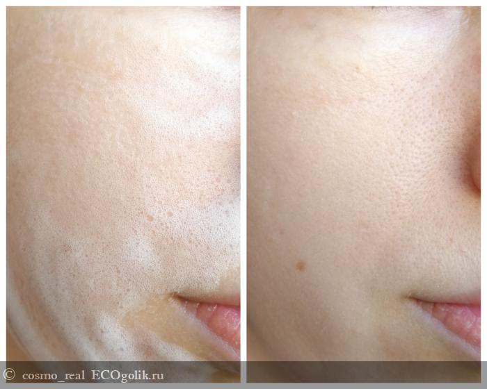Пенка быстро схватывается и начинает на глазах поглощать косметические средства. Я даже сильных усилий не прилагаю, буквально кончиками пальцами помассировала секунд 10.