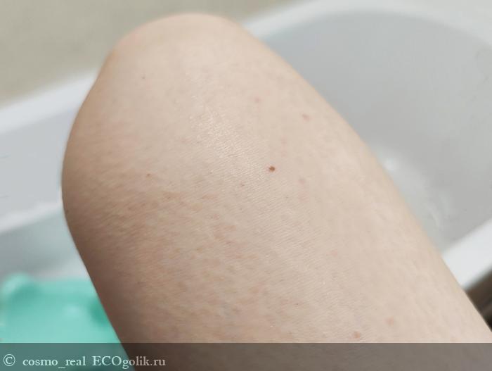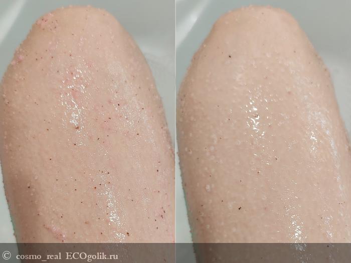После применения скраба не остается жирного блеска или липкости, при этом кожа достаточно увлажнена даже в холодное время года. Поэтому наносить дополнительный уход после скраба необязательно - разве что ради аромата. Кожа гладкая и бархатистая словно шелк